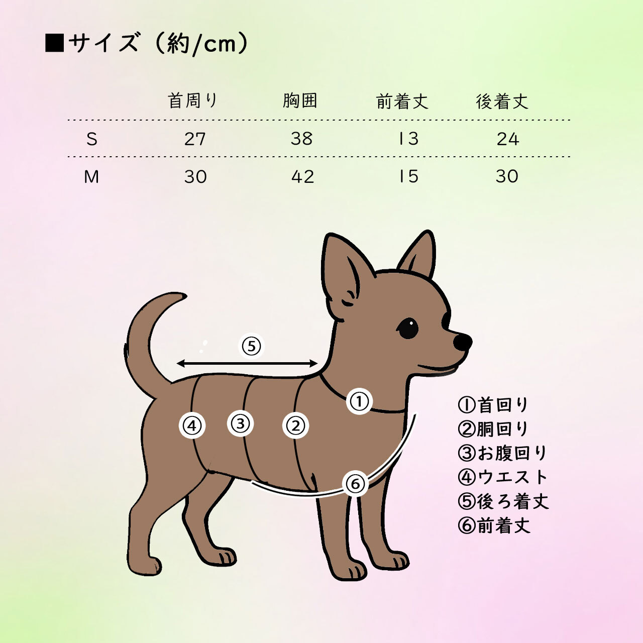 Mサイズ:首回り30 胸囲42 前着丈15 後ろ着丈30