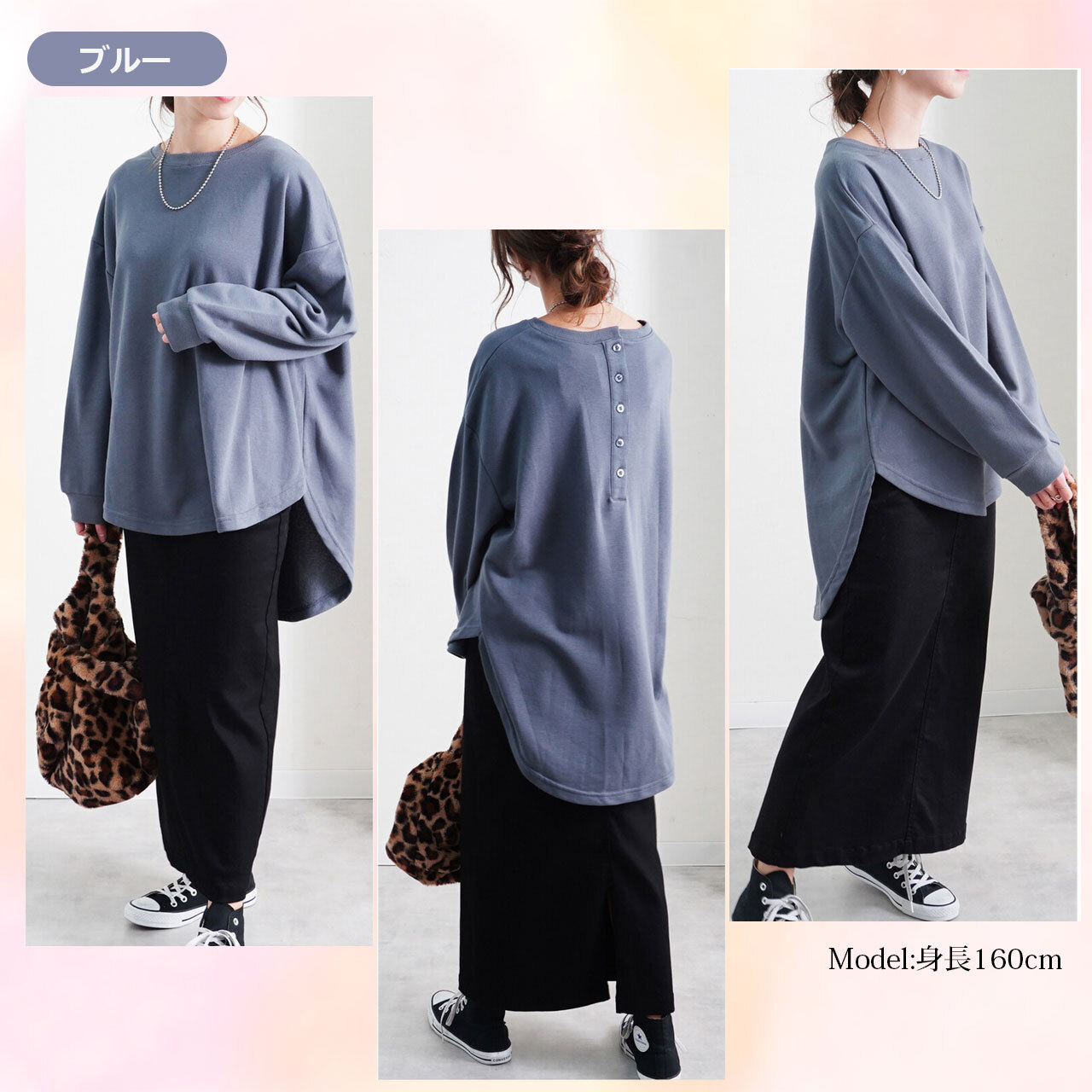 #スエット #トレーナー #長袖 #長そで #丸首 #クルーネック #チュニック