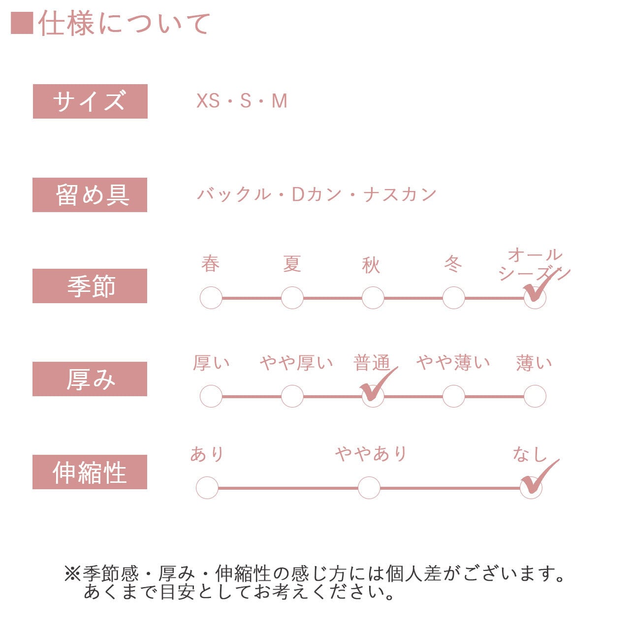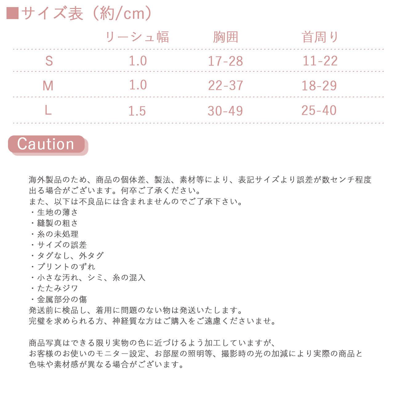 XS:幅1.0 胸囲17-28 首周り11-22