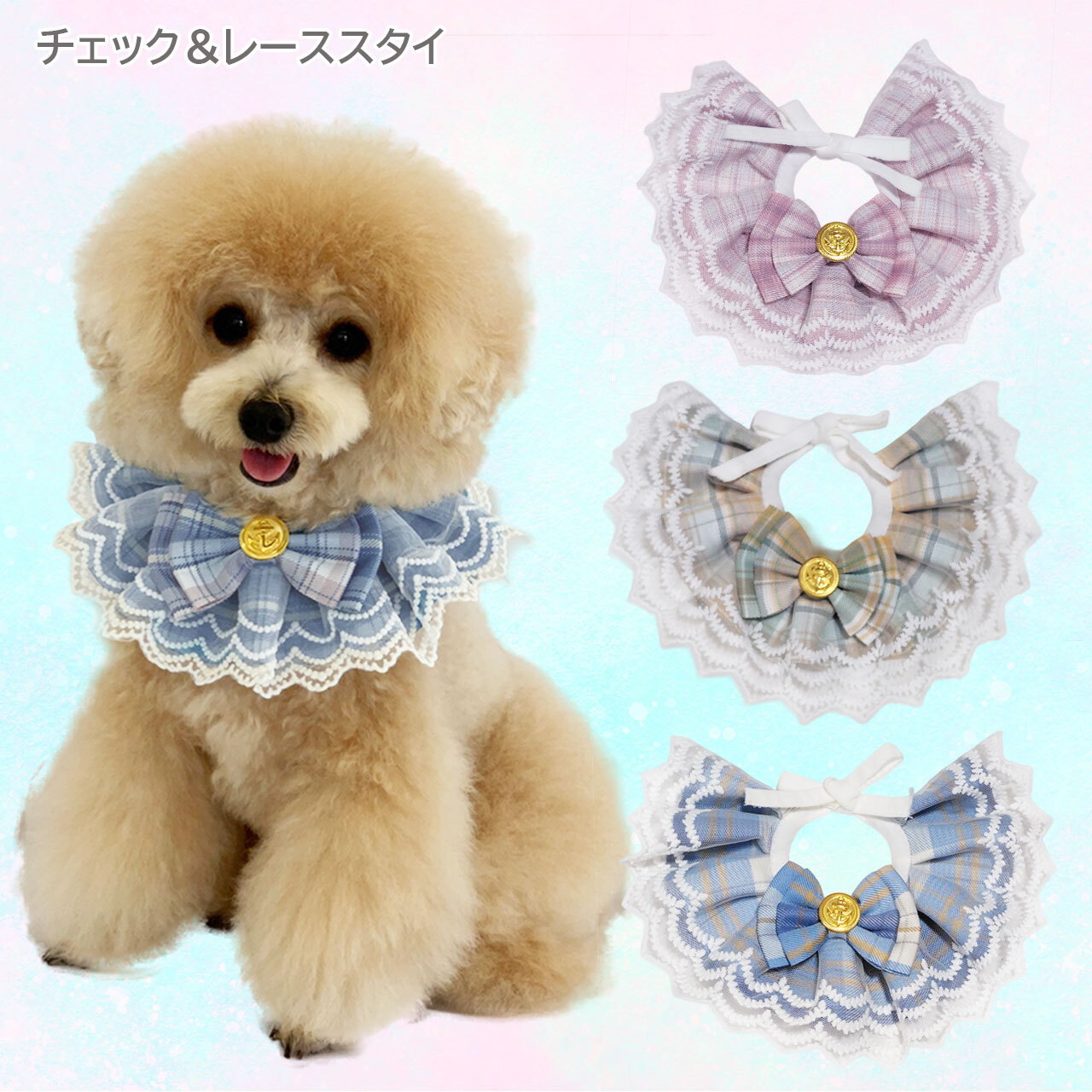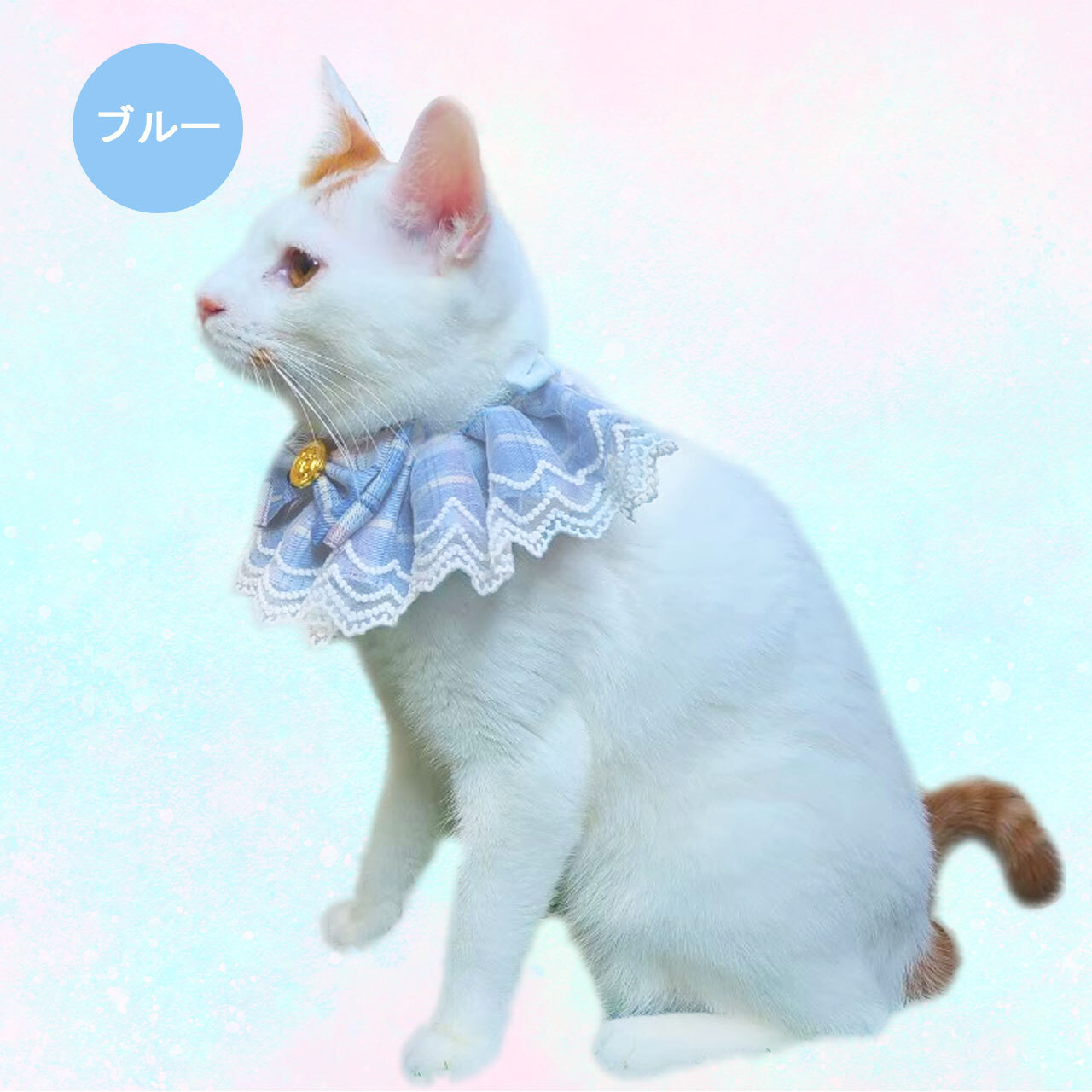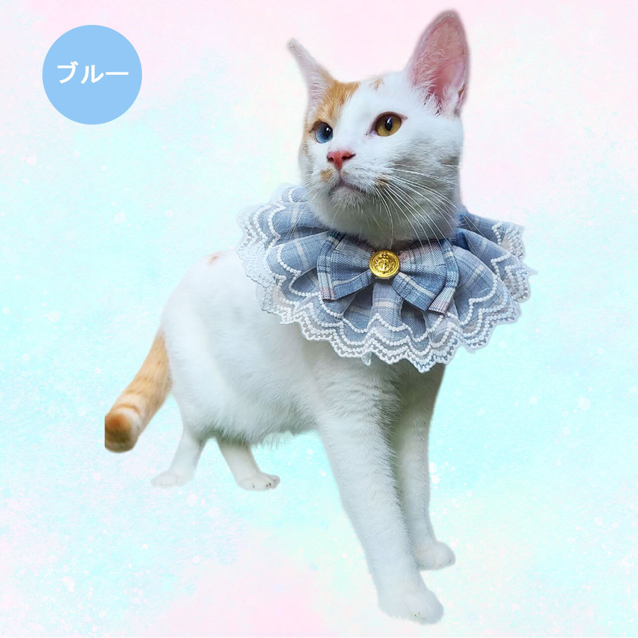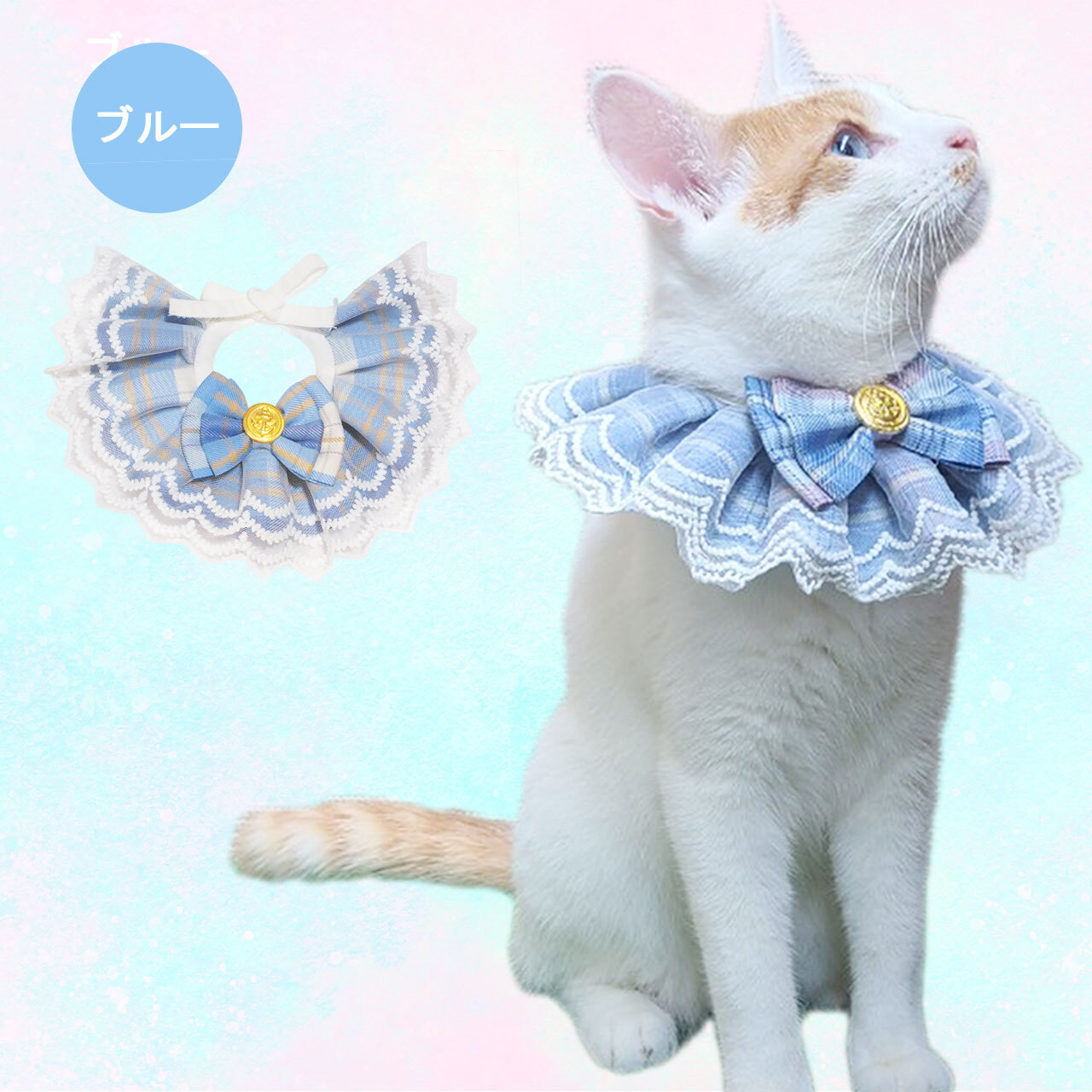 オリジナル ハンドメイド ダブルレース ブルースタイ ケープ 日本製 ペットアクセサリー Phiria0013 小型犬 猫 豪華