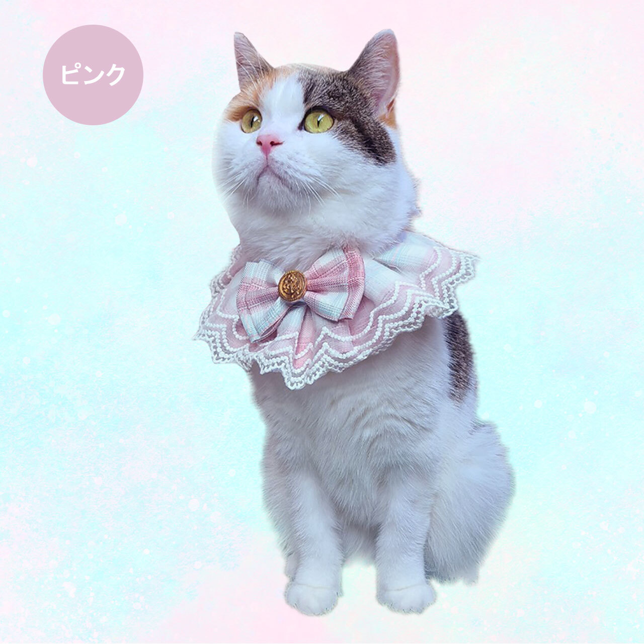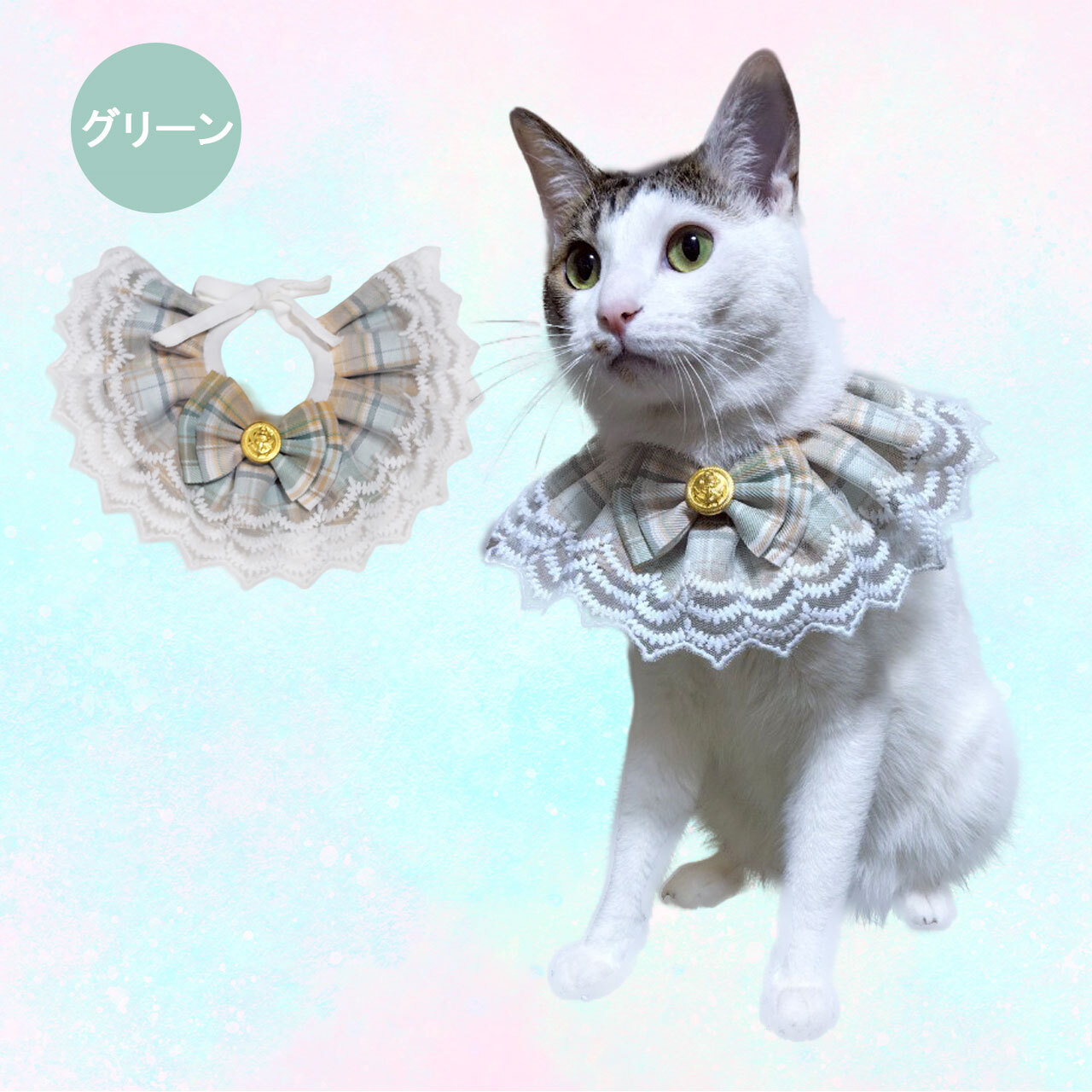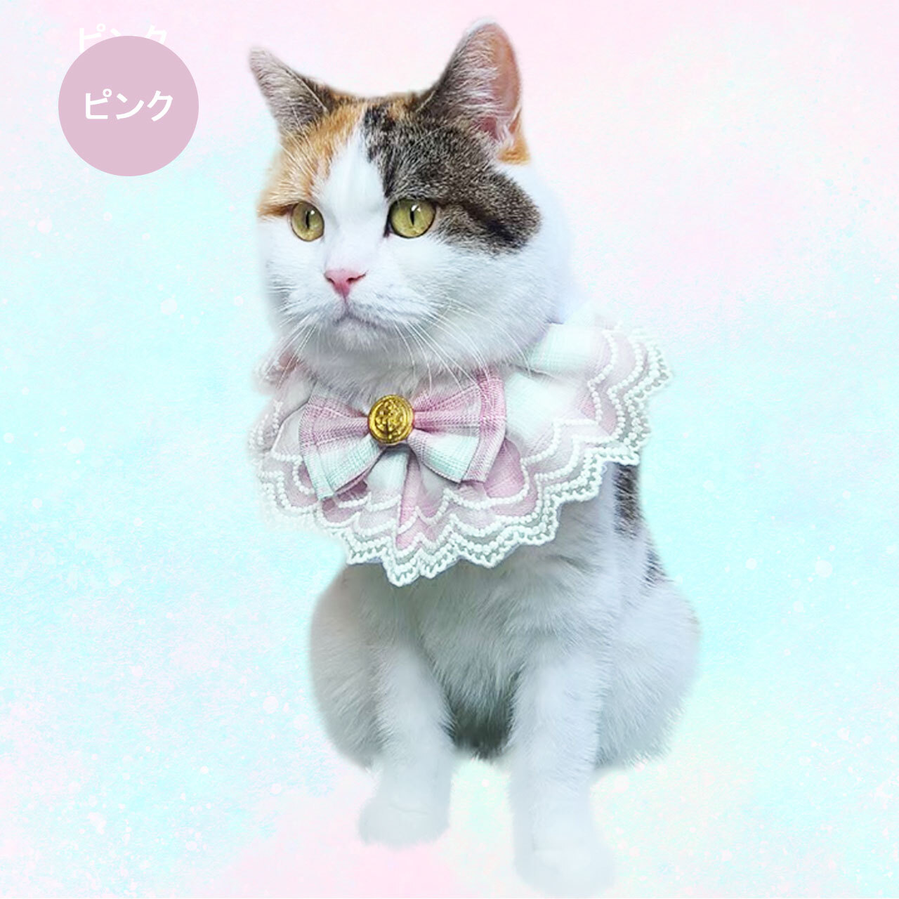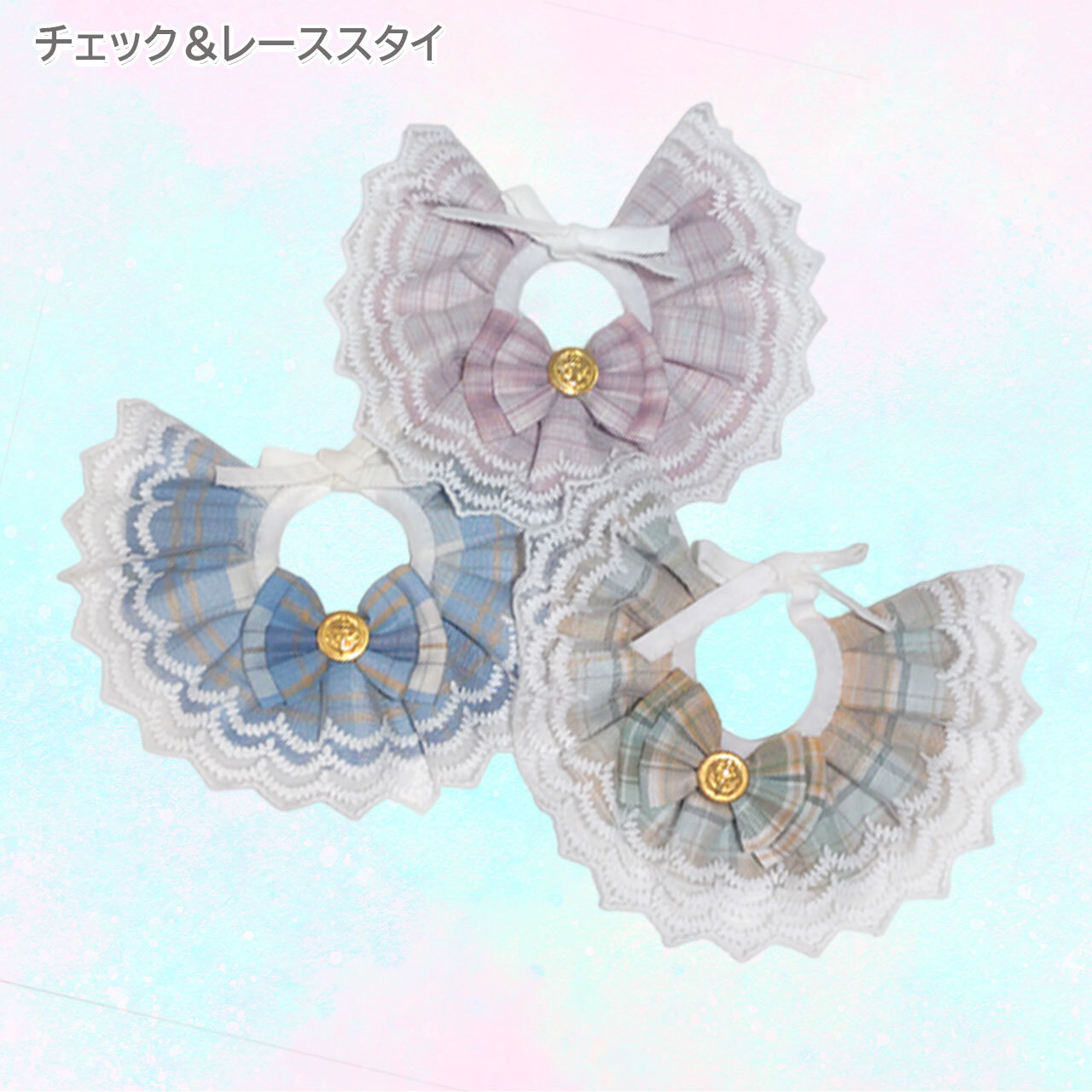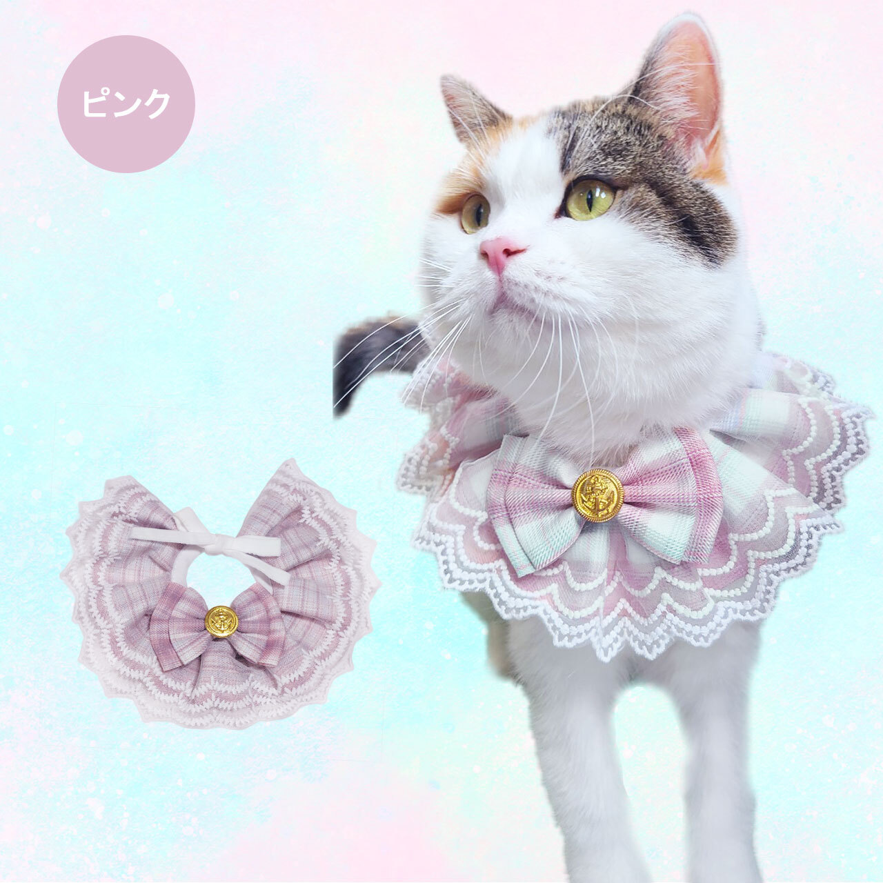 オリジナル ハンドメイド ダブルレース ブルースタイ ケープ 日本製 ペットアクセサリー Phiria0013 小型犬 猫 豪華
