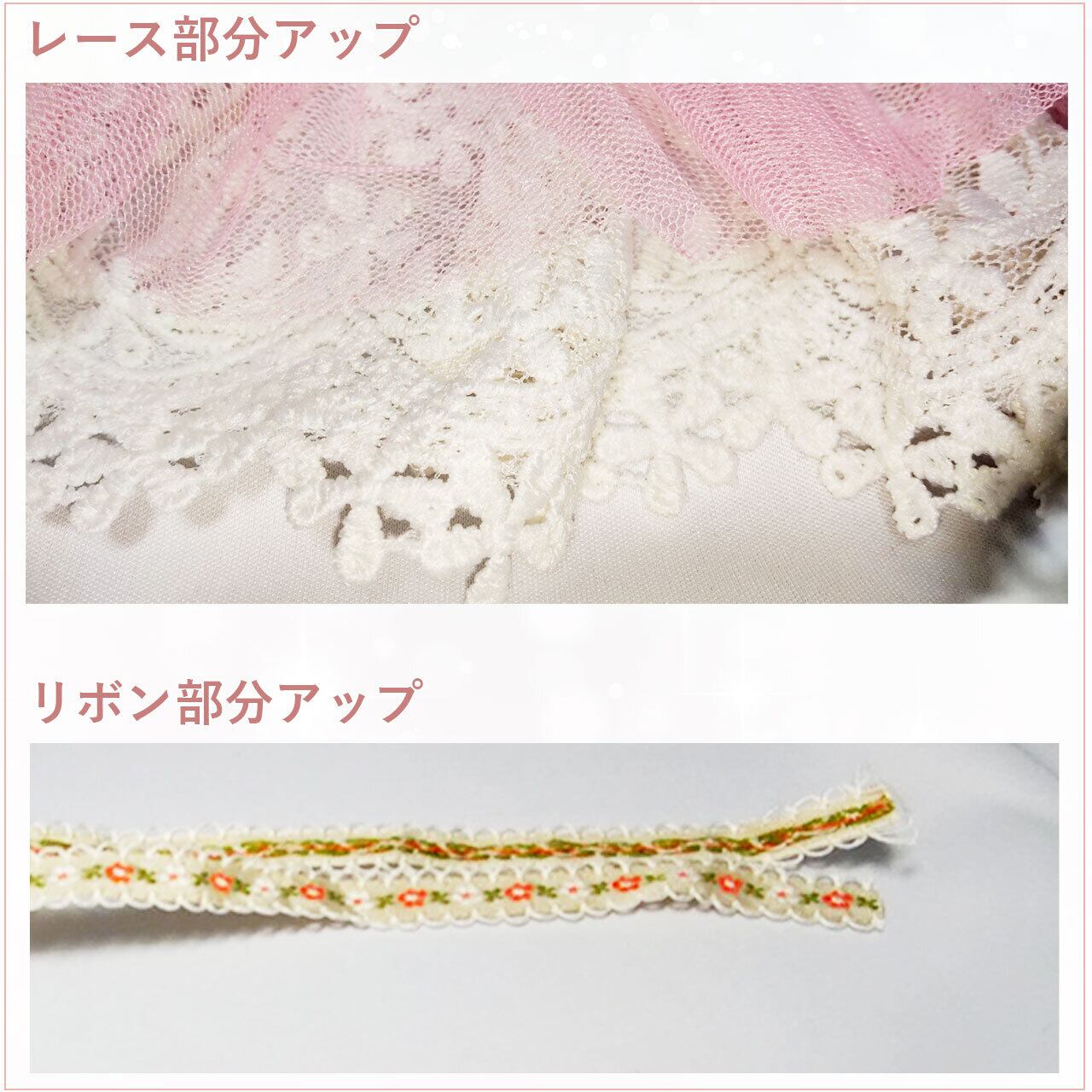 豪華なレースにピンクのメッシュを重ね、