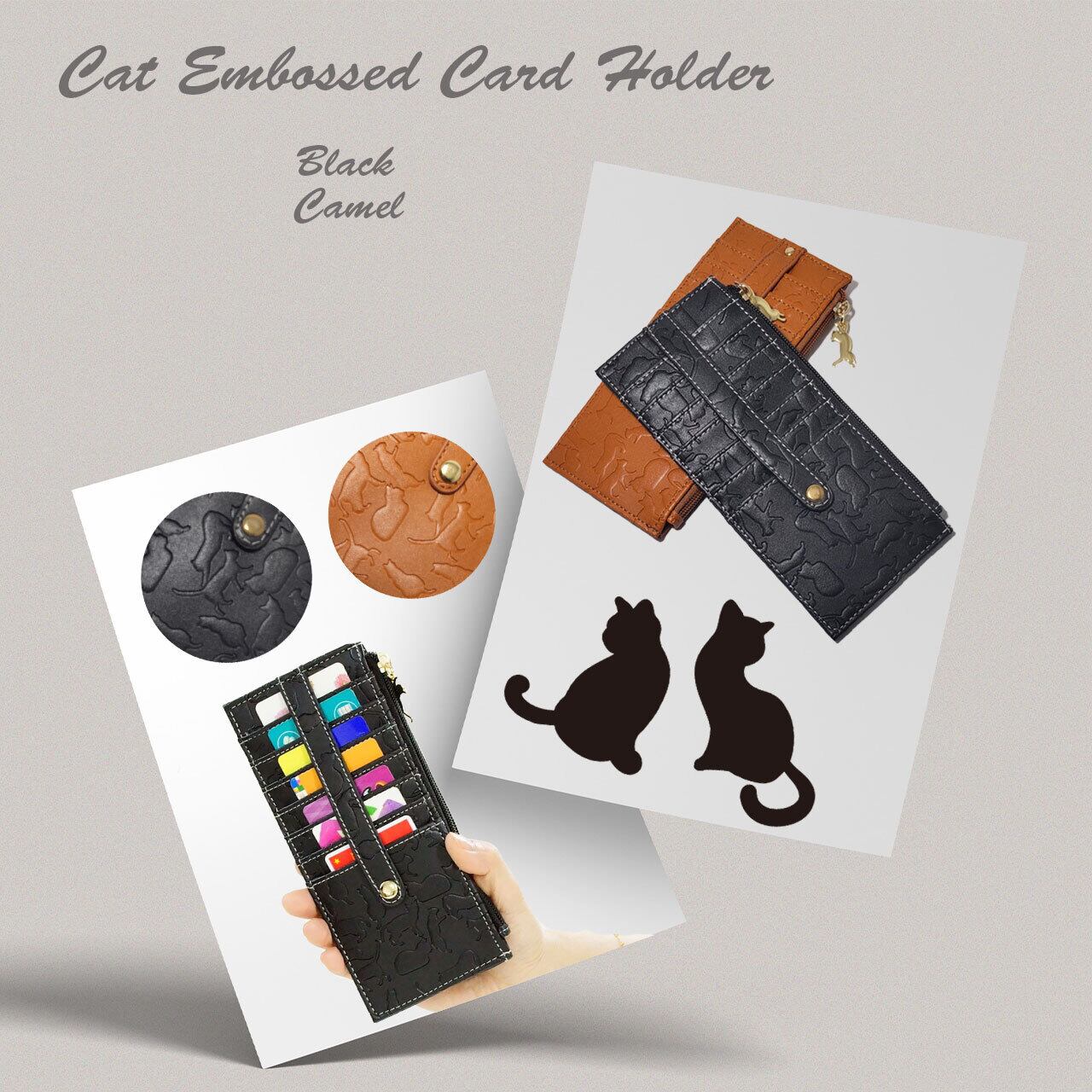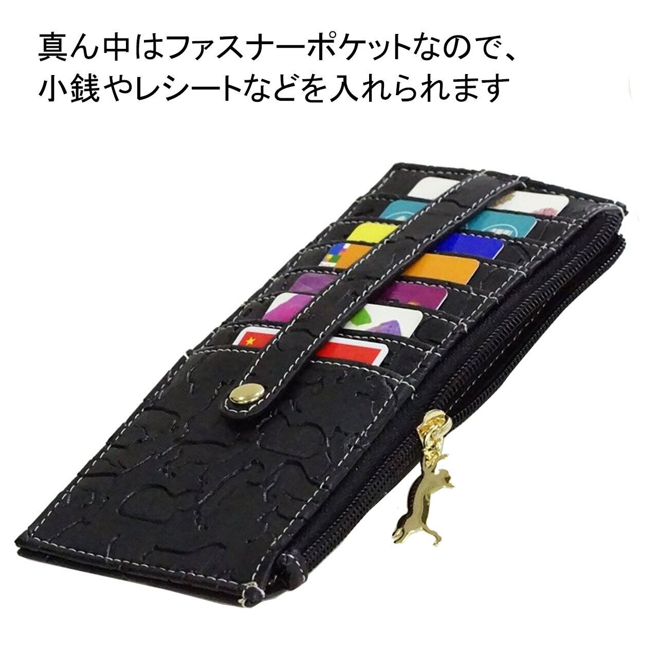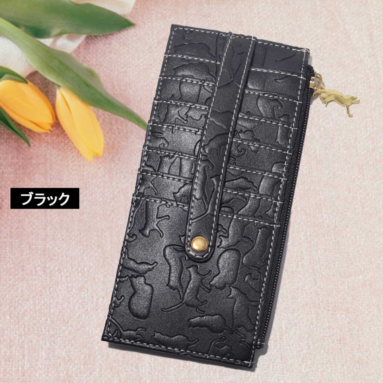 たくさんのネコシルエットが型押しされたカードケース。