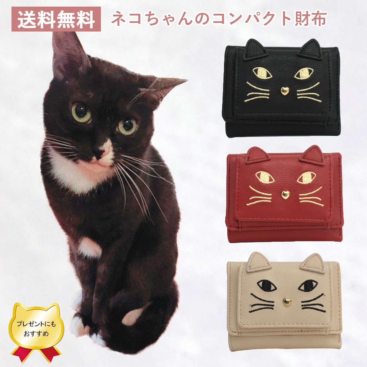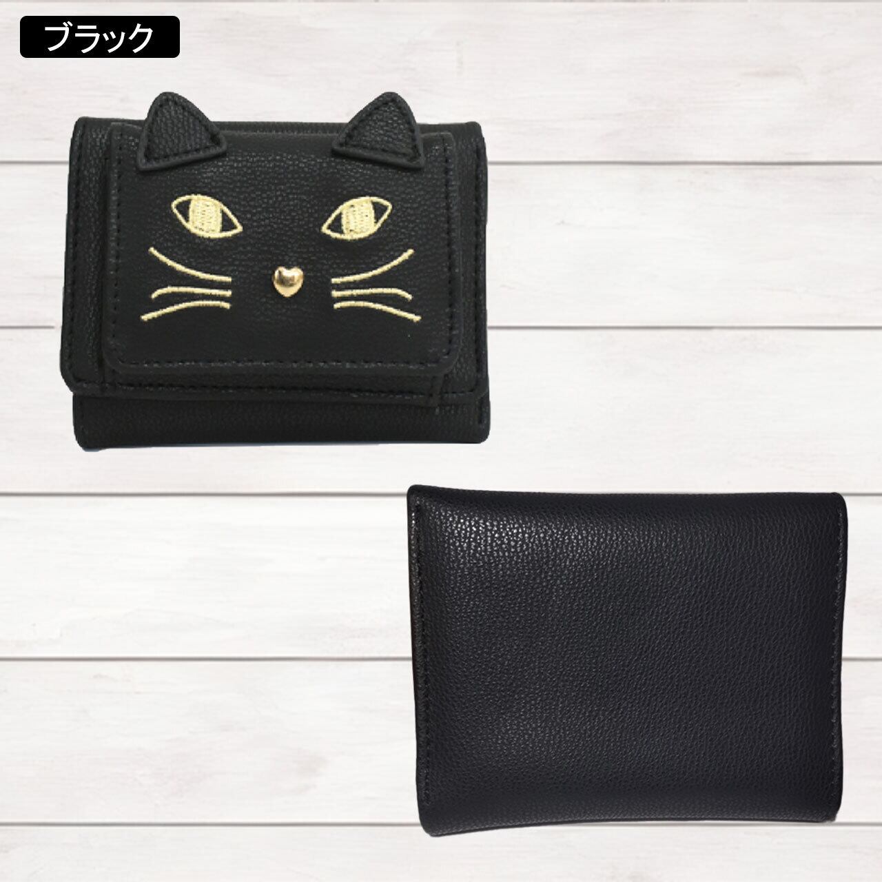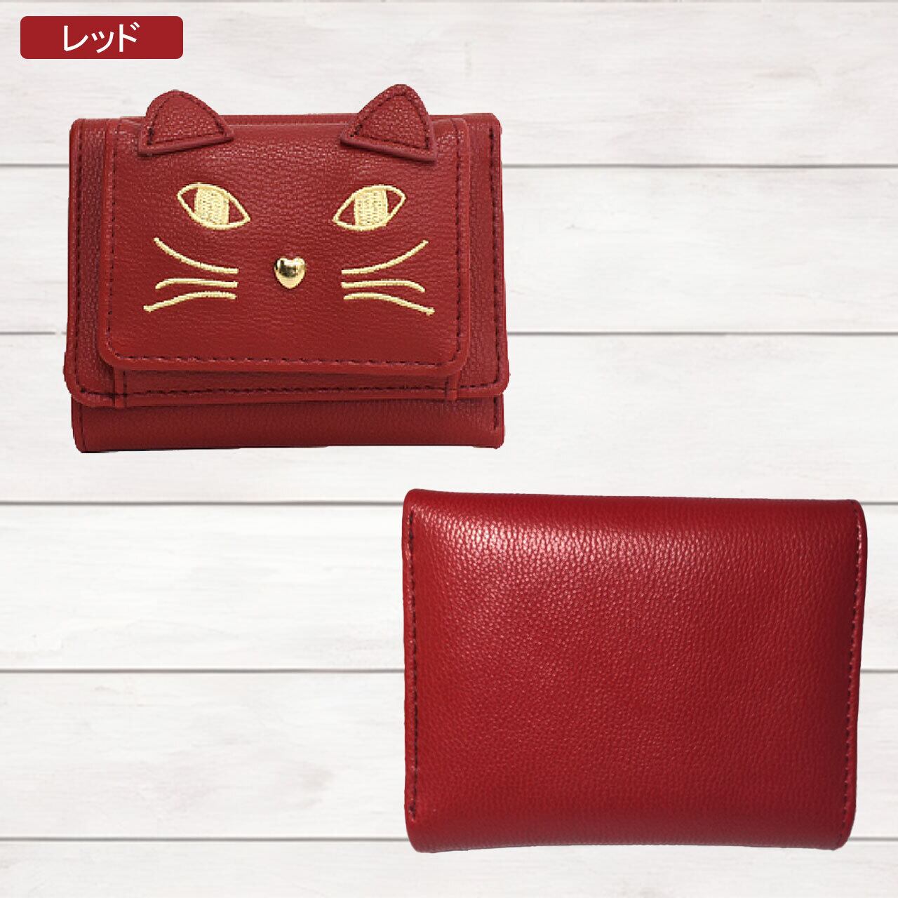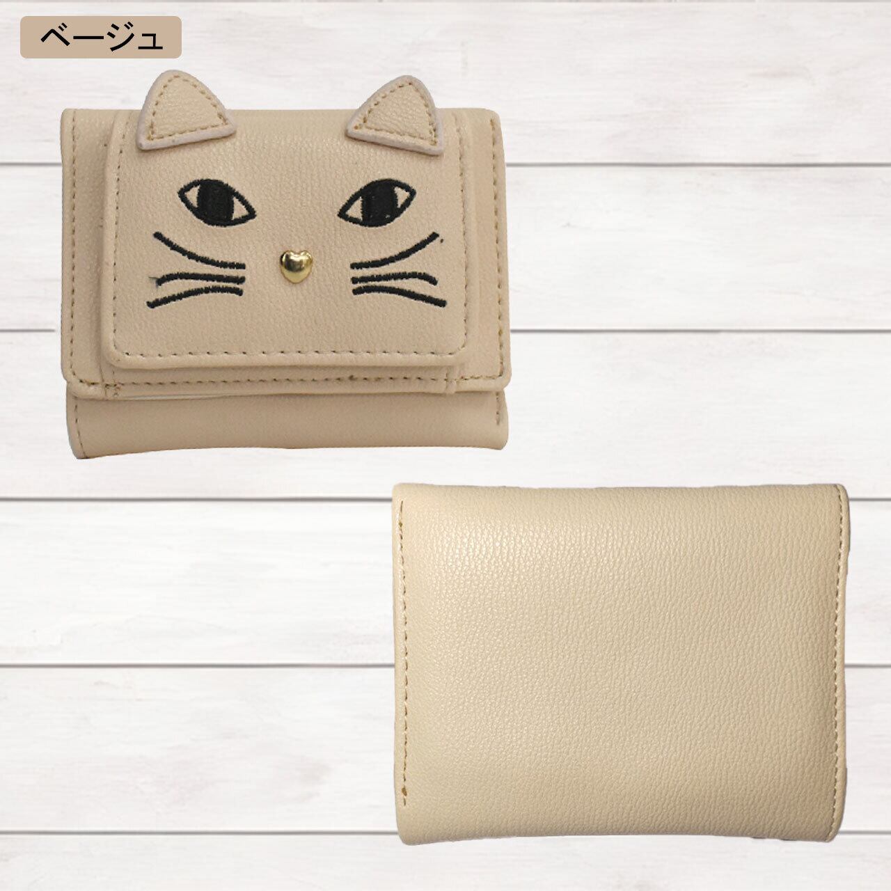 ネコちゃんの顔刺繍がかわいいコンパクト財布☆