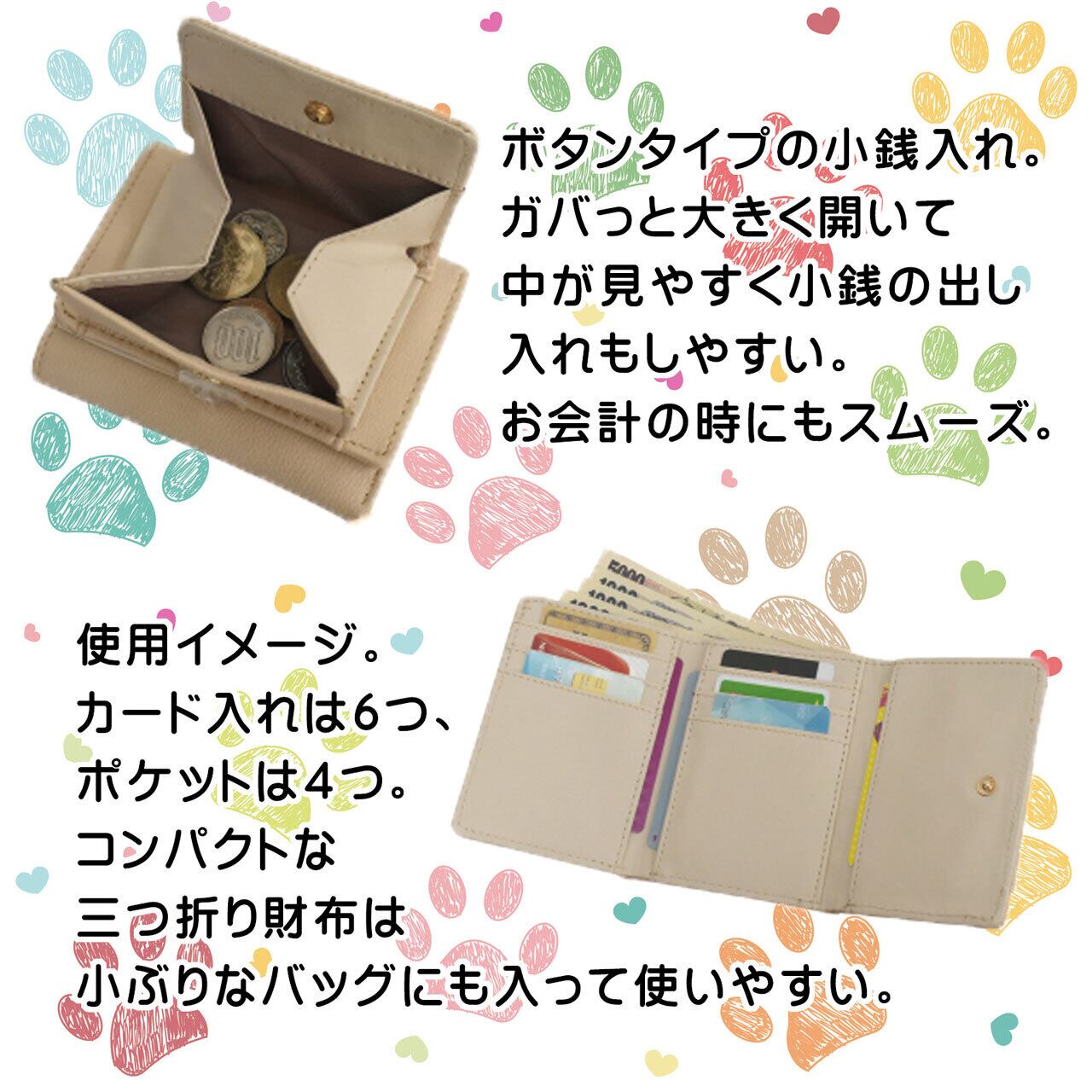 小さなお財布ですが小銭入れはボタン留めで大きく開くタイプ。
