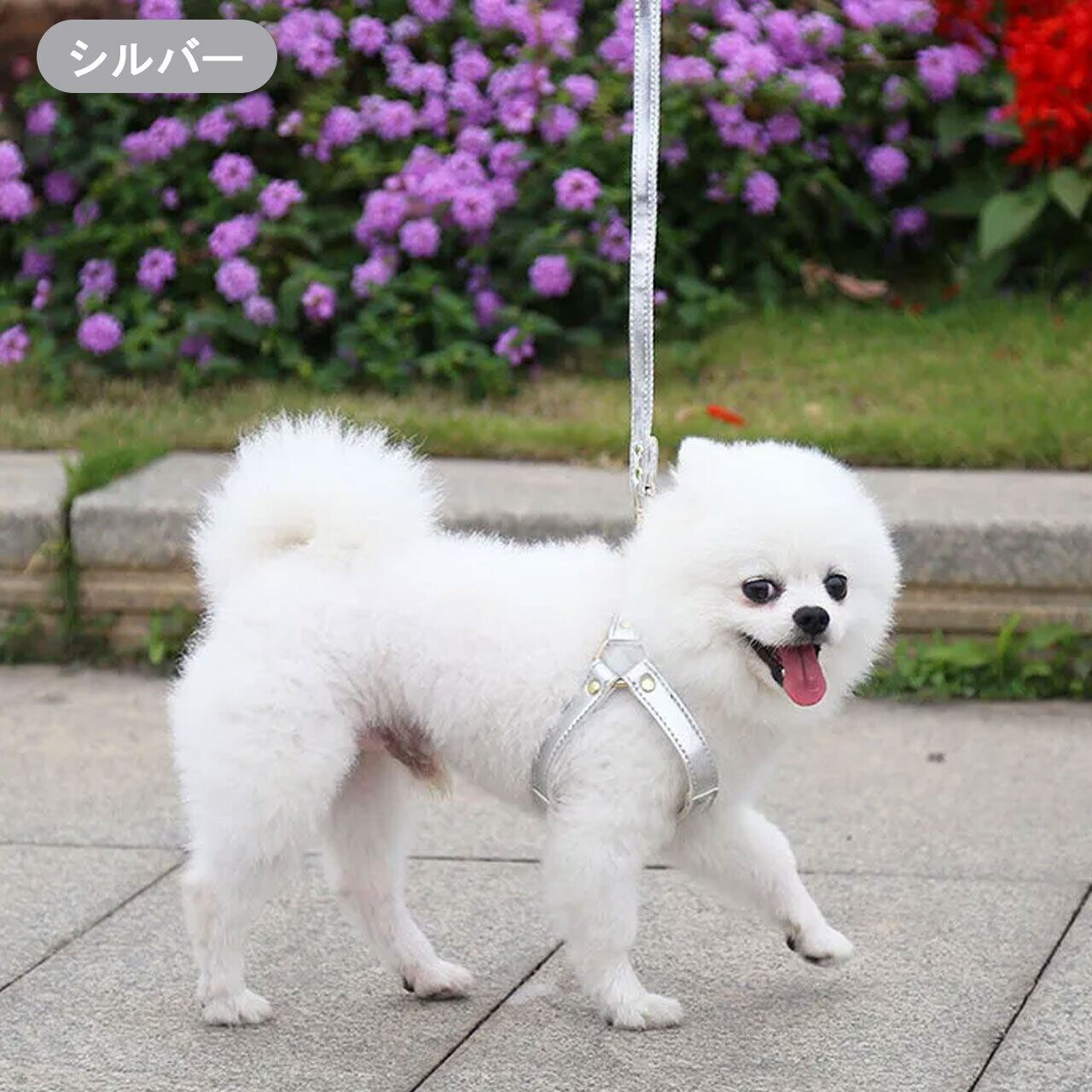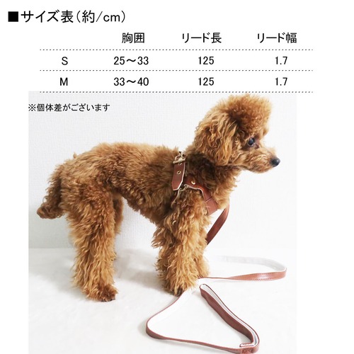 ベルトタイプのスタイリッシュデザインのハーネスセットです☆ シンプルなベルトデザインのハーネスをクールなカラーで♪ カラーはブラウン、ゴールド、シルバー、レッド ピンク、ネイビー、ブラックの7色 眼鏡タイプのハーネスとおなじように両足を通して後ろで留める簡単装着。 少し硬めの素材ですので、短毛のわんちゃんやハーネスが苦手なわんちゃんは 最初のうちはお洋服の上からの着用をおすすめいたします。 【サイズ(約/cm)】 Sサイズ:胸囲25~33 Mサイズ:胸囲33~40 リード(S・M共通):長さ125 幅1.7 #小型犬 #中型犬 #犬服 #dogwear #ハーネス #ベルトハーネス #胴輪 #ハーネス #ドッグ dog #ペット用 #犬具 #散歩 #お出かけ #簡単装着 #犬ハーネス #クールカラー #ハードタイプ
